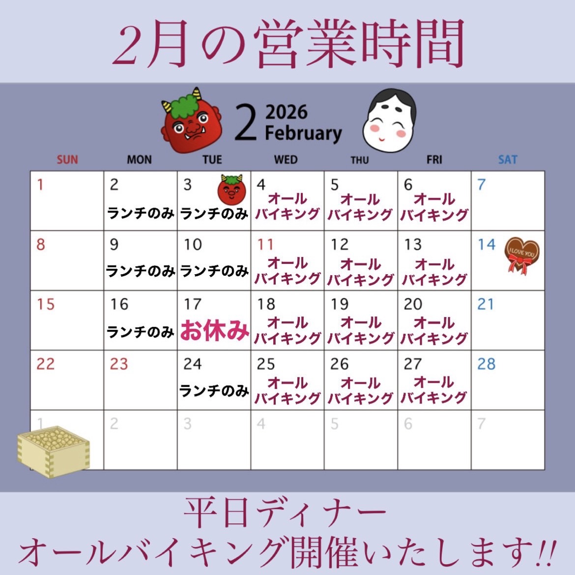 2/2(月)、3(火)、9(月)、10(火)、16(月)、24(火)
